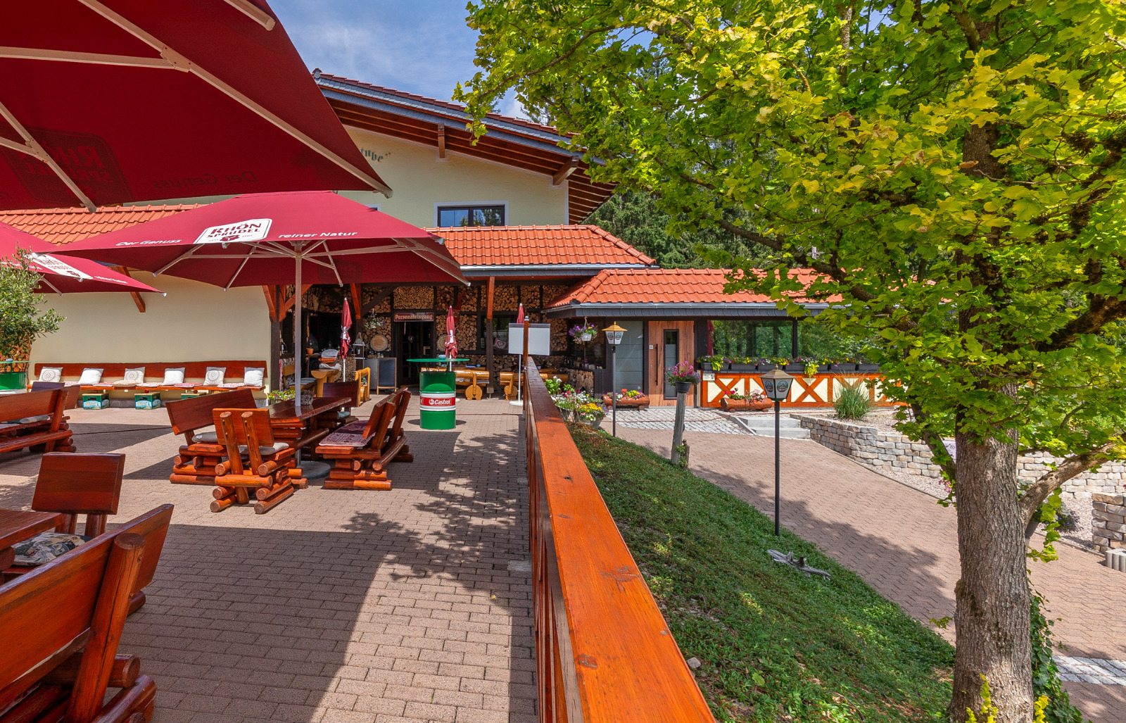 Im Biergarten kannst du bei schönem Wetter die Seele baumeln lassen, und für die Kleinen gibt’s genügend Platz zum Toben auf