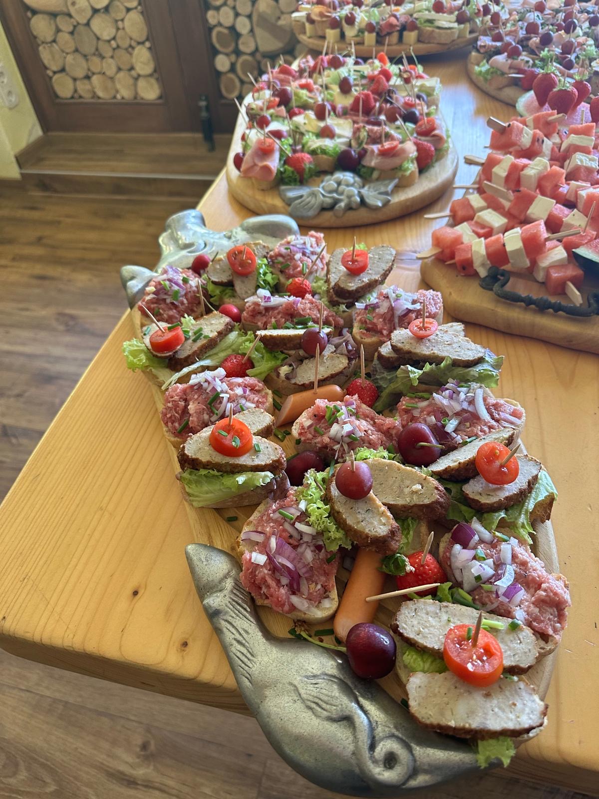 Ob rustikal oder elegant – unsere belegten Platten sind ein Genuss fürs Auge und den Gaumen. Frisches Brot, ausgewählte Aufschnitte, hausgemachte Aufstriche und edler Lachs, dekorativ angerichtet mit knackigem Gemüse und feinen Garnituren. Perfekt für Empfänge, Geburtstage oder als Teil eines Buffets.
