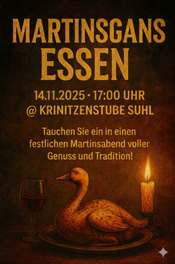 Wenn draußen die Lichter leuchten und der Duft von Gans durch die Stube zieht, beginnt ein besonderer Abend. Genießt gemütliche Stunden bei Kerzenschein, gutem Essen und dem Gefühl, angekommen zu sein.